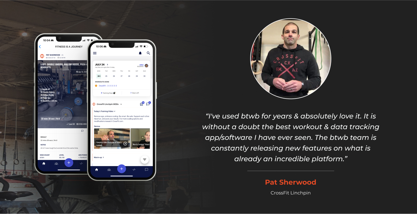 “I can easily access the workouts I follow and log my times and weights. The progression measurements keep you aware of your strengths/weaknesses. I highly recommend any athlete to BTWB to track all of their workouts.”